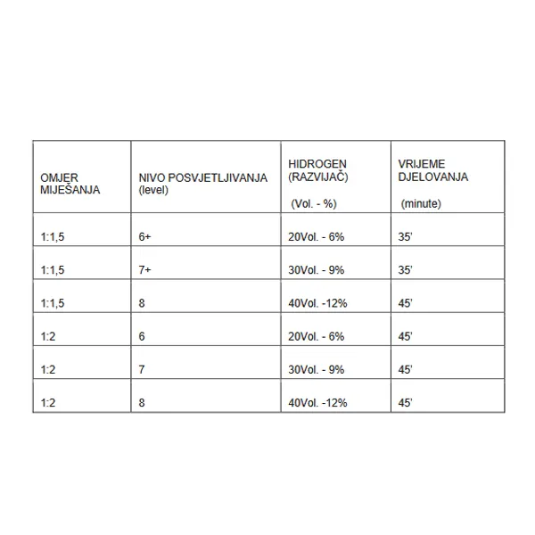 • Maksimalna moć posvjetljivanja kose do 8 tonova